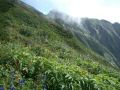 今回はテント装備での登山なので重い分膝への負担が増大します。登りがメインの1日目はクリア。そして、膝への負担が響くのが2日目の下り行程です。種池山荘からの長い下りの途中右足に違和感を感じ始めました、すぐに痛みに移りそうな気配。それまで使用していたダブルストックを使うのをやめてペースを落として下るようにするといつのまにか膝の違和感は消えました。しかし、違和感が消えた代わりに足の疲労感がひどくなり結局最後のころはずるずると下る羽目になってしまいました(>_<)。まだまだ修行が足りませんね。 |
